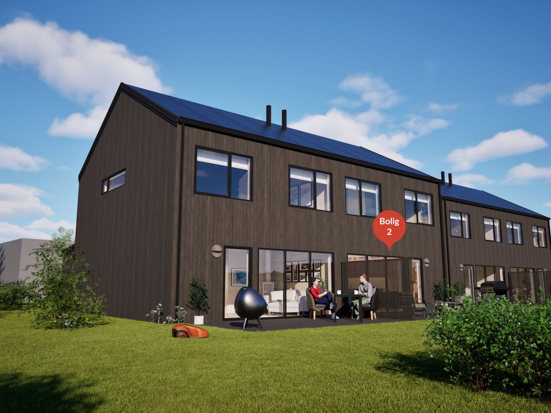Vi presenterer en flott tomannsbolig under oppføriong på Bertnes, med en sentral beliggenhet som gir kort avstand til butikk, skole og busstopp. Boligen oppføres med konseptet Skandi og holder en gjennomgående høy standard, og leveres med blant annet smarthusløsning fra Witana og elbillader.